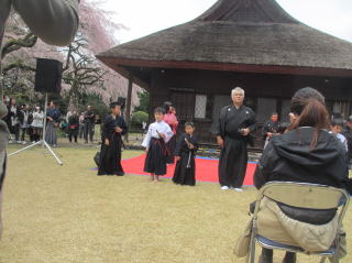 | 令和4年4月9日10日 御殿場市秩父宮記念公園にて演武及び各種のブ-ス開設をしました。この2日間は天候にも恵まれ満開の桜を楽しみにました 今回は手裏剣打ち体験の他に鎧着付け・旅装束着付け体験ブ-スを出し好評を得ました。 |