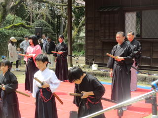 | 居合道、無双直伝英信流御殿場道場の方々の演武が披露されました。古根村剣士00剣士の初伝技に続き佐藤先生の奥伝技が披露されました | |||