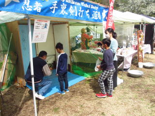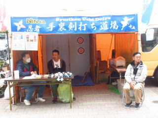 | ブ-スの数も前回の半分程度でしたので少し寂しいですね | 手裏剣道場も準備万端、お客様を待ちます 大人の方も興味がある様です | ||