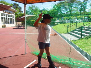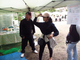 | 鈴木指導員が懇切丁寧な指導をしています。 | 女性の方はどうも手裏剣にはまるみたいですね、 この方も30分位打 ち続けていました。 | ||
