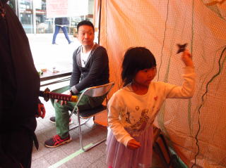 | 手裏剣はこうして打てばいいよ | この兎さん吹き矢は無理でしょう | 銀ブラマルシェのスタッフ○○さんがきてくれました。 | |||