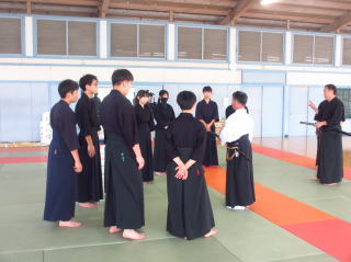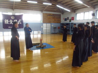 | 令和3年5月26日 昇段審査が行われました。審査は学科・道着の畳み方・下げ緒の結び方・形審査・試し斬りの審査が行われ岩間氏が見事 初段に合格しました。おめでとう初段免状と黒帯を授与されました帯には銀線が1本刺繡されておりかっこいいです2段になれば2本になります。 形審査及び試し斬り審査は誠心館youtube動画をご覧くださいをご覧ください。 |