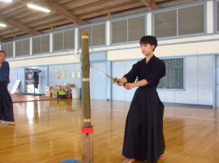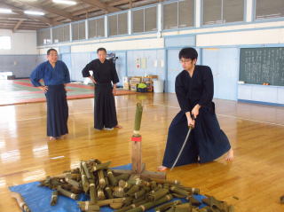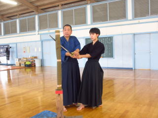 | 2023/07/15 県立南高校剣道部員による試し斬り体験会が実施されました。剣道を学ぶ上で必要とされる「心・技・体」を真剣を使用して体験をしてもらい ました競技ではない日本刀の本来の目的である「斬る」を体験をしてもらう事で力に頼らずただしく斬る為には「心・技・体=気・剣・体」の一致の必要性を 知ってもらう事が今回の体験の目的です。誠心館youtube動画をご覧ください |