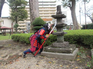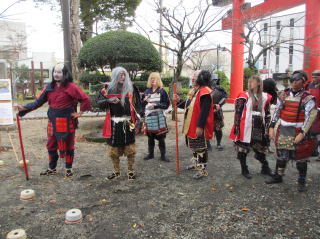 | 笑顔で手を振って答えてくれ多くの方が甲冑武者や忍者と記念撮影をして交流をふかめました。特に居合道の演武には関心を持ってくれ熱心に見入って いました。 |