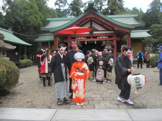 | 2024/10/20 御殿場線祭り(武者行列・ブ-ス開設) 朝から小雨が降り御殿場線祭りの全体パレ-ドは中止になり武者隊独自での本部前まで行進を行い午前中は終了。午後は同日開催の御殿場初の風流(ふりゅう)まつり、狐の嫁入り行列、落武者行列がおこなわれ参陣武者も加わり落ち武者に成りきっての楽しく面白い行列になりました。 沿道の観客も初めて見る狐の嫁入り行列と落武者行列に衝撃と感動そして恐怖(子供が泣き)と母親は泣きじゃくる我が子を見て笑顔で楽しんでいました。思いのほか大きな反響が有りぜひ来年も実施して欲しいとの要望が多数ありましたので今回以上に趣向を凝らした落武者行列を計画したいと思います。 |