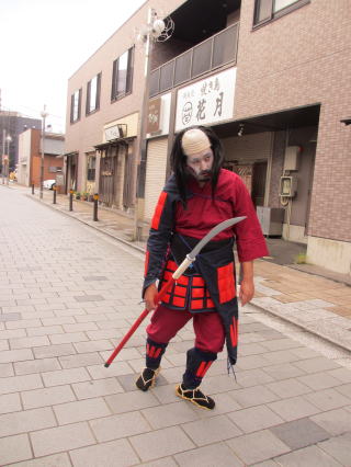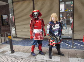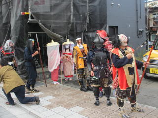 | それぞれの思いがこもった自作の甲冑を着ての行進は堂々の武者ぶりです。 怪しげな雰囲気を漂わせた幕末の志士も登場しました。 | |||||||