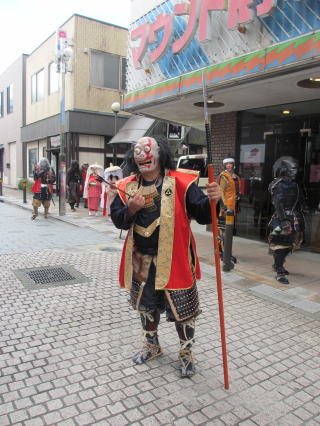 | 武者隊勢ぞろい | 少年忍者隊・少年武者隊を先頭で 行進を開始。手作り甲冑教室で制作した自慢の甲冑を着て行進をしています | ||