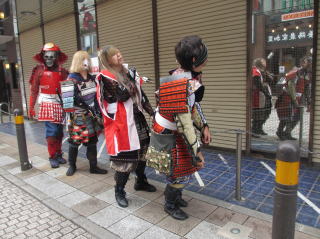 | 行列で人気があったのは女武者・旅装束の姫隊そしてコスプレイヤーさん達です、笑顔で写真撮影に応じて沿道の方々と会話を楽しんでいました | |||